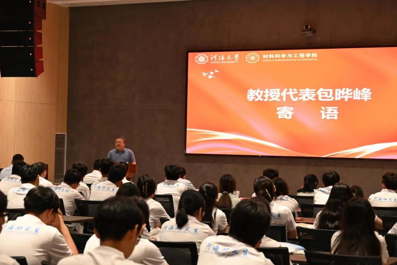 包晔峰教授作为教师代表寄语新生,他与新生分享了自己的求学生涯和科研经验,结合自身丰富的教学经验提出针对性的意见,他提到“研究生学习最终目的是要提出问题,有实战能力,要掌握数据分析的一定方法,对实验结果有一定方法评判”。包教授希望研究生新同学不断努力,不断奋斗,以严谨认真的态度和昂扬向上的精神,去面对研究生生活的挑战。